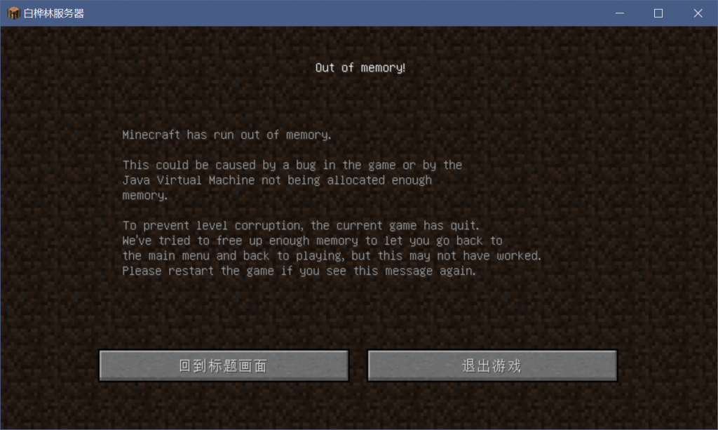 这是你内存溢出导致的,你可以通过在启动器给客户端分配更多的内存,在设置-全局设置-Java内存设置中调整“最大内存”。你也可以通过重启客户端来释放内存。你也可以通过安装foamfix来直接减少使用的内存,但请注意,若安装了这个,请在退出服务器后再切换光影,否则可能会造成客户端崩溃。